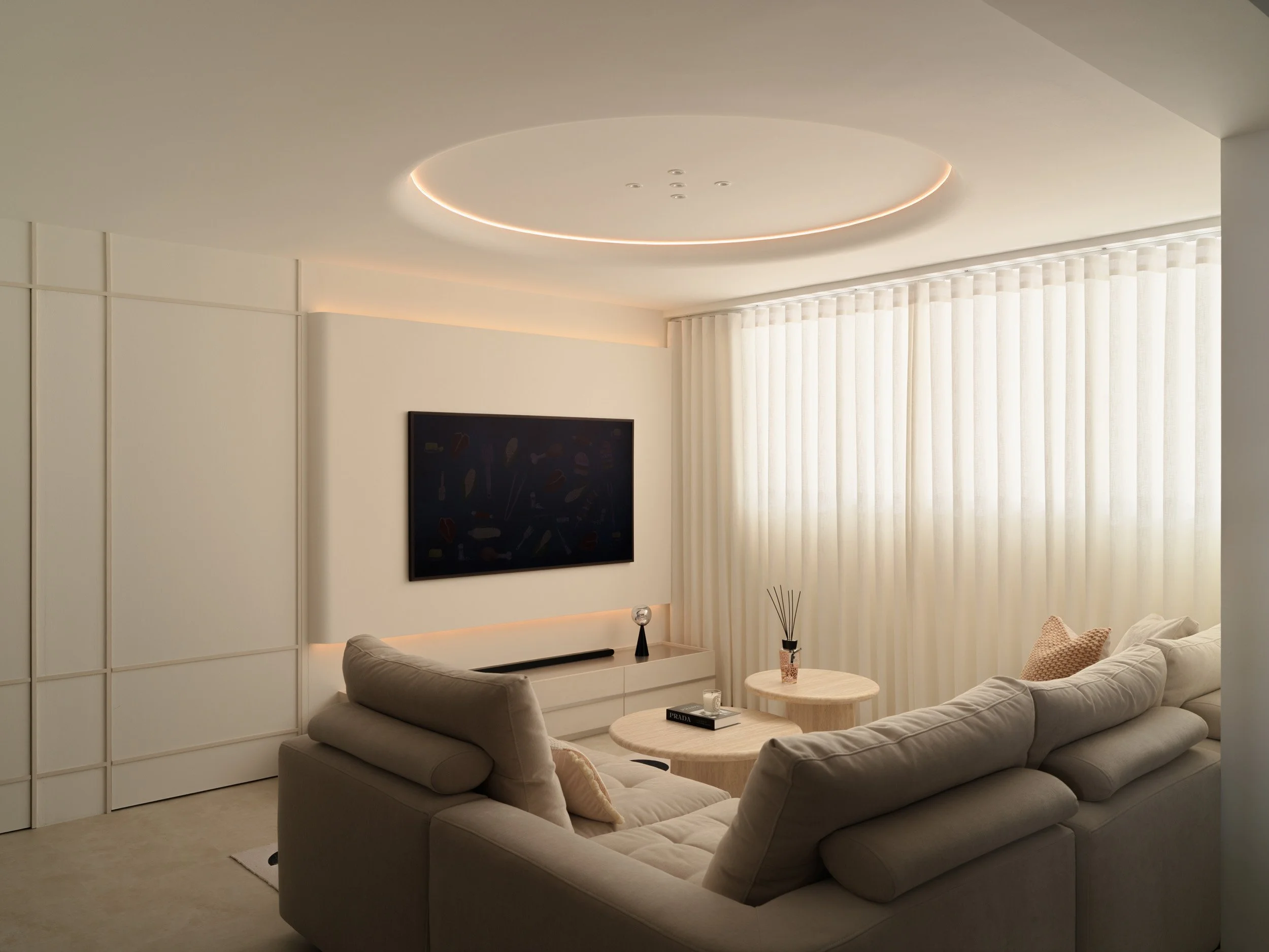 Ripple fold works wherever a clean, continuous panel is called for. Use them as room dividers to define a space without closing it off. Mount them floor-to-ceiling in front of cabinetry for a seamless, built-in look. Or keep it simple — perfectly draped windows, done right.