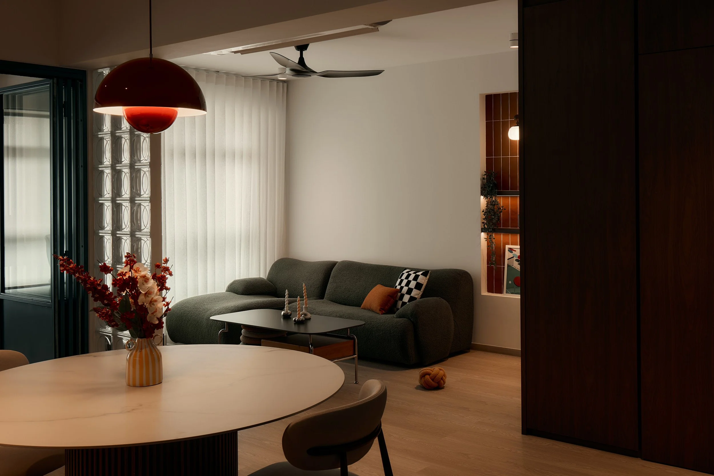 Ripple fold curtains create evenly spaced, continuous waves that drape cleanly from ceiling to floor. Unlike traditional pleated styles, ripple folds use a track system that keeps fabric uniform across the full width of your window. This makes them a popular choice for floor-to-ceiling glazing, open-plan living areas, and bedrooms where a streamlined look matters. Available in a range of fabrics from sheer to dim-out, ripple fold curtains suit both residential and commercial spaces. Motorisation options from Dooya, AOK, and Somfy are available for effortless daily use. Every set is custom measured and fitted by our in-house team across Singapore. WhatsApp us to book a free on-site consultation.